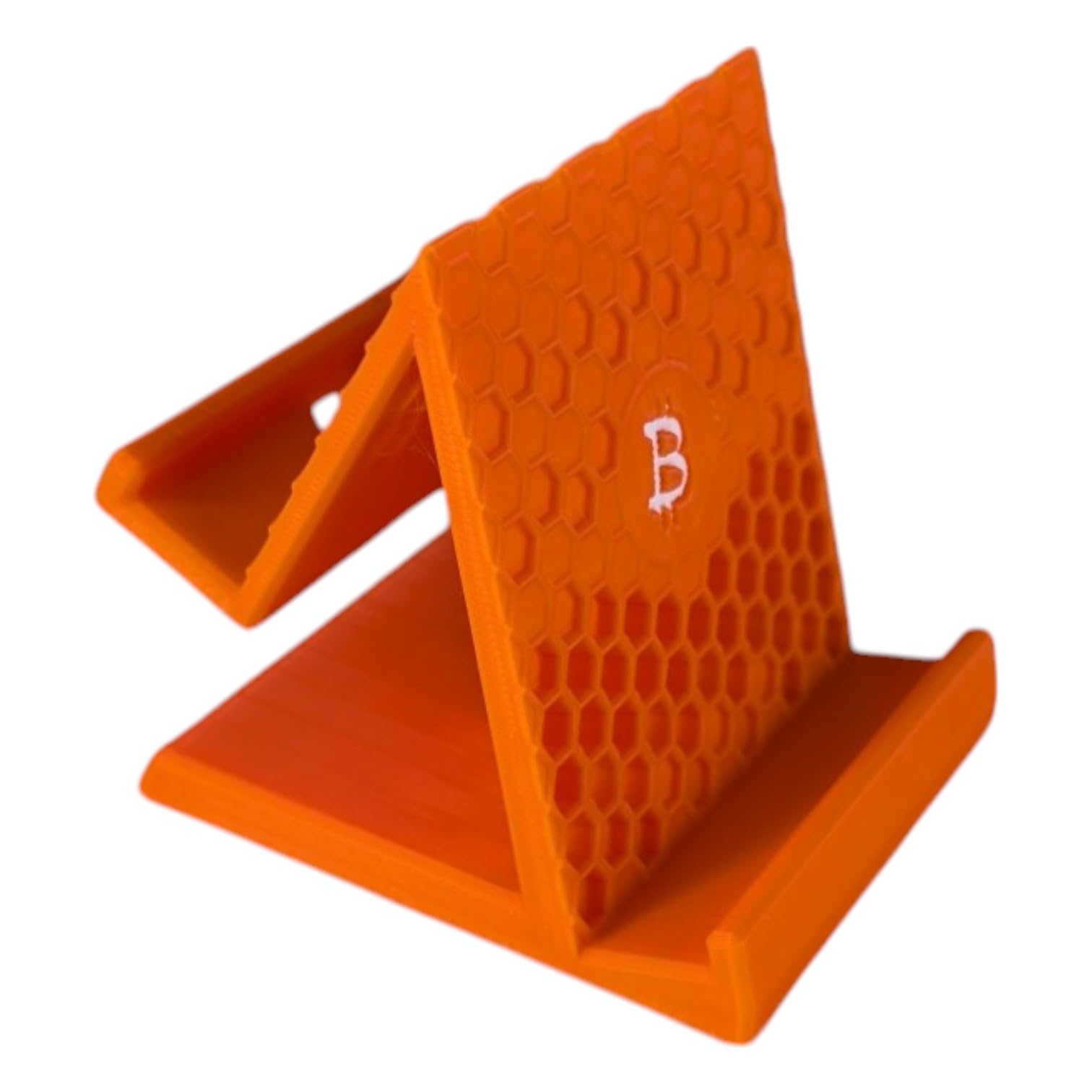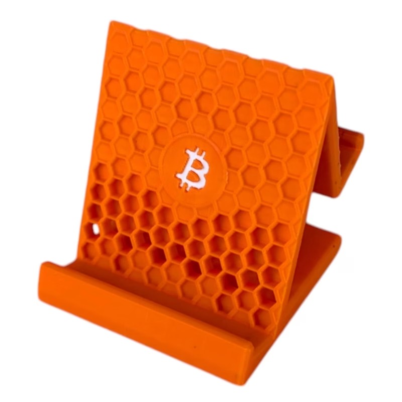 Showcase your love for Bitcoin with this uniquely designed Bitcoin Phone Holder. Featuring a bold honeycomb pattern and the iconic Bitcoin logo, this 3D-printed stand is as stylish as it is functional. Perfect for home, office, or even your mining setup, this stand securely holds your phone while adding a touch of crypto-inspired decor to your space. The durable and lightweight construction ensures stability while supporting devices of various sizes. Its ergonomic angle provides optimal viewing for video calls, content browsing, or managing your mining operations. Designed for Bitcoin enthusiasts who appreciate both functionality and style, this phone holder is the perfect blend of practicality and aesthetic appeal.