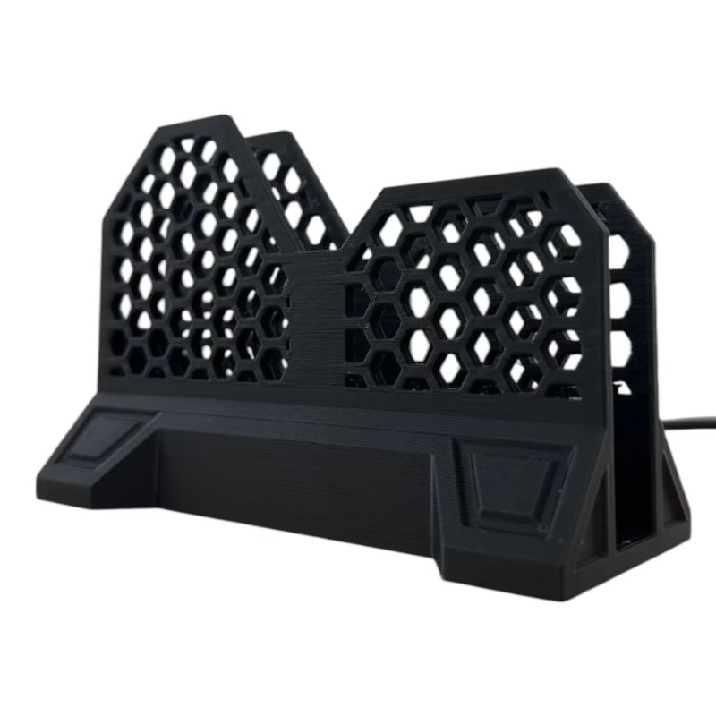 Upgrade your tech setup with this expertly 3D printed external hard drive stand, designed by D-CENTRAL TECHNOLOGIES in Quebec, Canada. Featuring a bold honeycomb-style hex-grid and reinforced angled base, this holder provides a secure and stylish mount for your portable hard drives. Whether you’re organizing a workspace or protecting your valuable data gear, this mount delivers unmatched utility and aesthetic appeal. It keeps drives upright, well-ventilated, and easily accessible while reducing cable clutter. Engineered for universal compatibility, it accommodates most 2.5″ external hard drives, including top models from Seagate and Western Digital. The precision-printed structure ensures lightweight durability without compromising stability, thanks to its wide stance and slip-resistant footprint. Ideal for tech enthusiasts, digital creators, and data professionals who value clean organization with a futuristic edge. external hard drive stand, portable hard drive holder, 3D printed tech accessories, desk cable organizer, Seagate WD Toshiba drive mount, hex grid holder, USB drive support, hard disk bracket, desktop setup accessories, Canadian 3D printing, gaming desk gear, minimalist tech organizer, hard drive vertical stand, office cable management, workspace drive holder