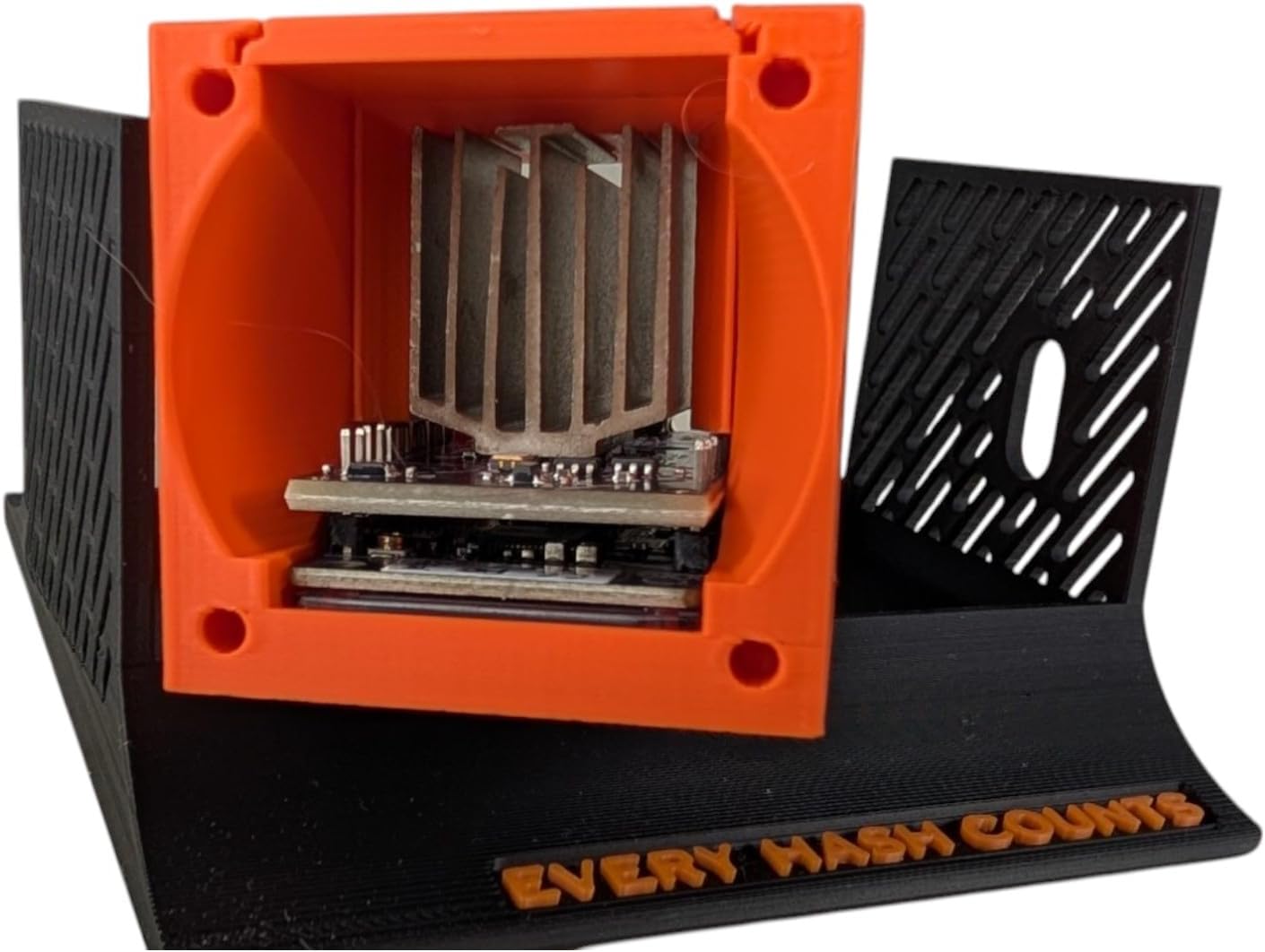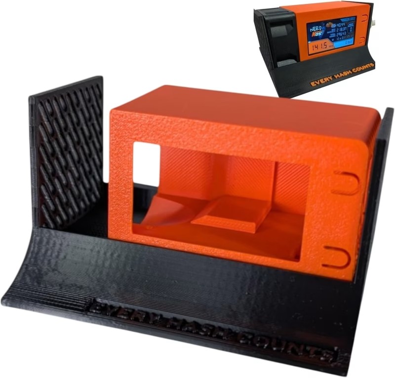 Engineered for performance, styled for impact—the NerdNOS Modern Case brings a fresh design ethos to your NerdMiner setup. Inspired by the look and cooling of a nitrous-boosted racing block, this 3D-printed enclosure is precision-crafted to deliver superior heat dissipation, optimal airflow, and a striking desktop presence for solo Bitcoin miners. Designed by D-Central Technologies, this two-tone case doesn’t just protect your hardware—it elevates it. Built with the mantra « EVERY HASH COUNTS », it’s the ultimate plug-and-play upgrade for enthusiasts looking to show off their NerdMiner in race-ready form.