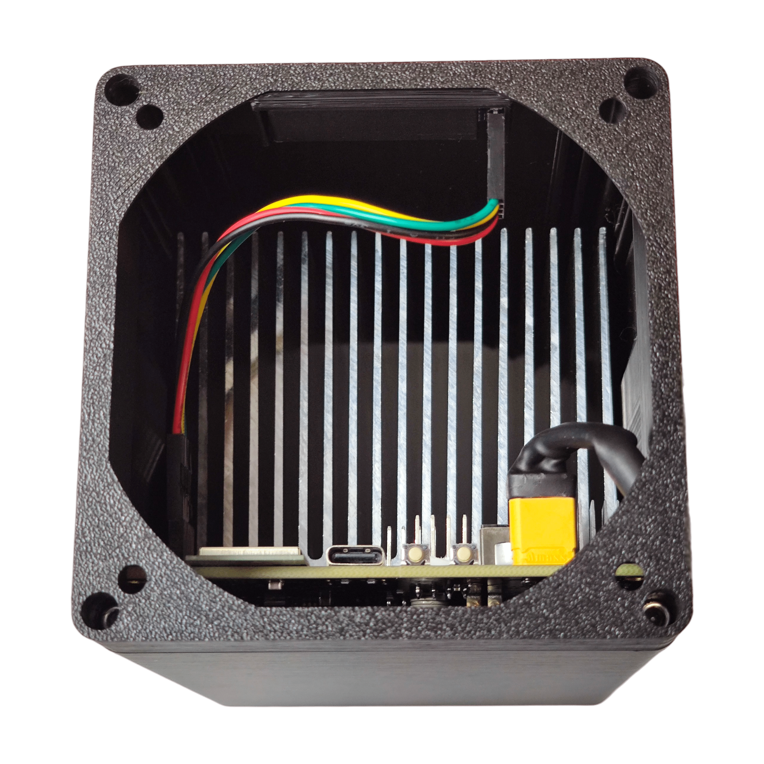 Not included (sold separately): 12V DC power supply (120W+ recommended, XT30 connector). Browse compatible power supplies and Hex accessories.